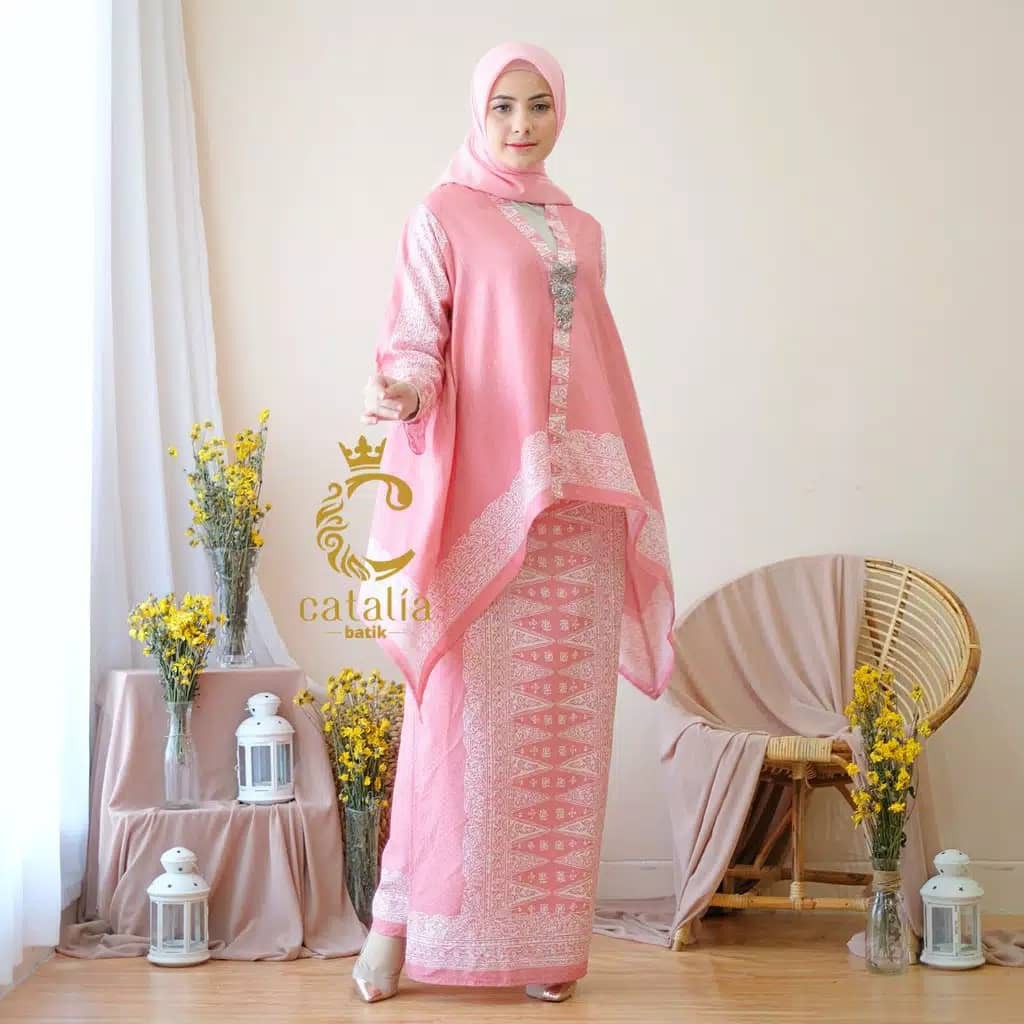 Pre Order Muslimah Baju Kurung Batik Sumatera Catalia Kebaya Labuh Set Wear Red Pink Shopee Singapore